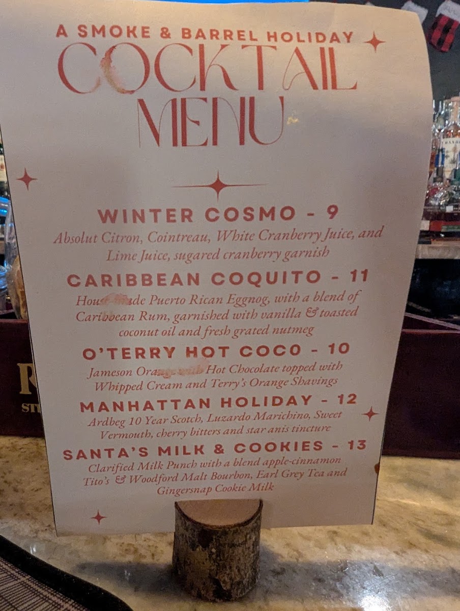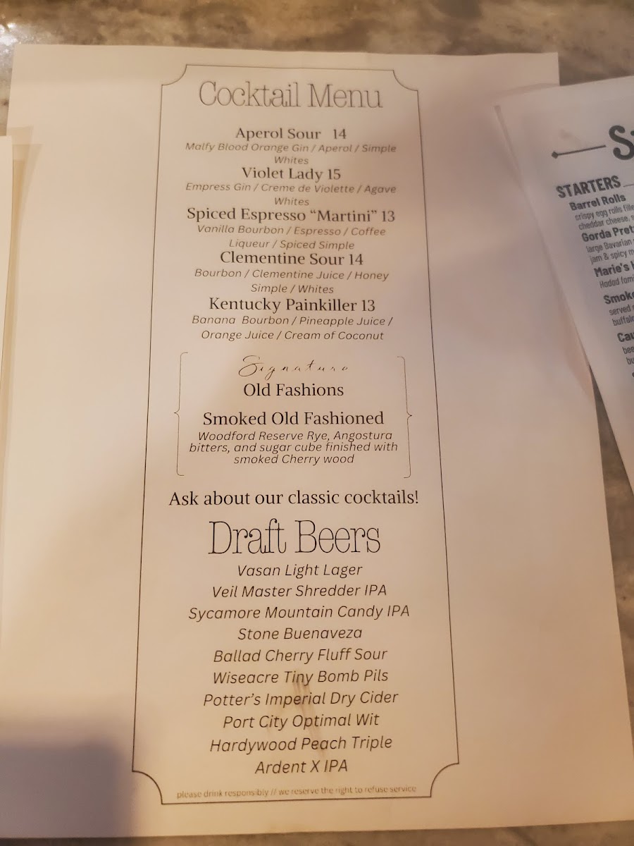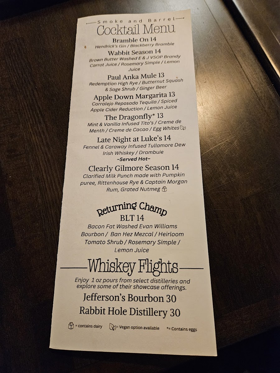 The menu at Smoke And Barrel offers a diverse range of dishes that are sure to satisfy a variety of tastes. For starters, guests can indulge in options like the refreshing Avocado Cucumber Dip, crispy Basket Truffle Parmesan Fries, or savory Barrel Rolls. If you're in the mood for something lighter, the Burrata & Grilled Peaches and Fried Squash Blossoms are excellent choices. Moving on to the entrees, the restaurant presents an impressive selection including the flavorful Spring Pasta, tender Lamb Lollipops, and the juicy Bistro Tender Steak. Vegetarians can enjoy the hearty Stuffed Portabella, while those seeking a classic American dish can opt for the delicious Smoke & Barrel Burger. For sides, you can choose from a variety of options such as Sd. French Fries, Sd. Truffle Fries, or Sd. Herb Risotto. To complement the meal, the restaurant also offers fresh salads like the Seasonal Salad, House Salad, and the ever-popular Caesar Salad. Desserts at Smoke And Barrel include sweet treats like Cheesecake, warm Beignet, and decadent Chocolate Lava Cake. Whether you're stopping by for a casual meal or a special occasion, the diverse menu ensures there’s something for everyone.